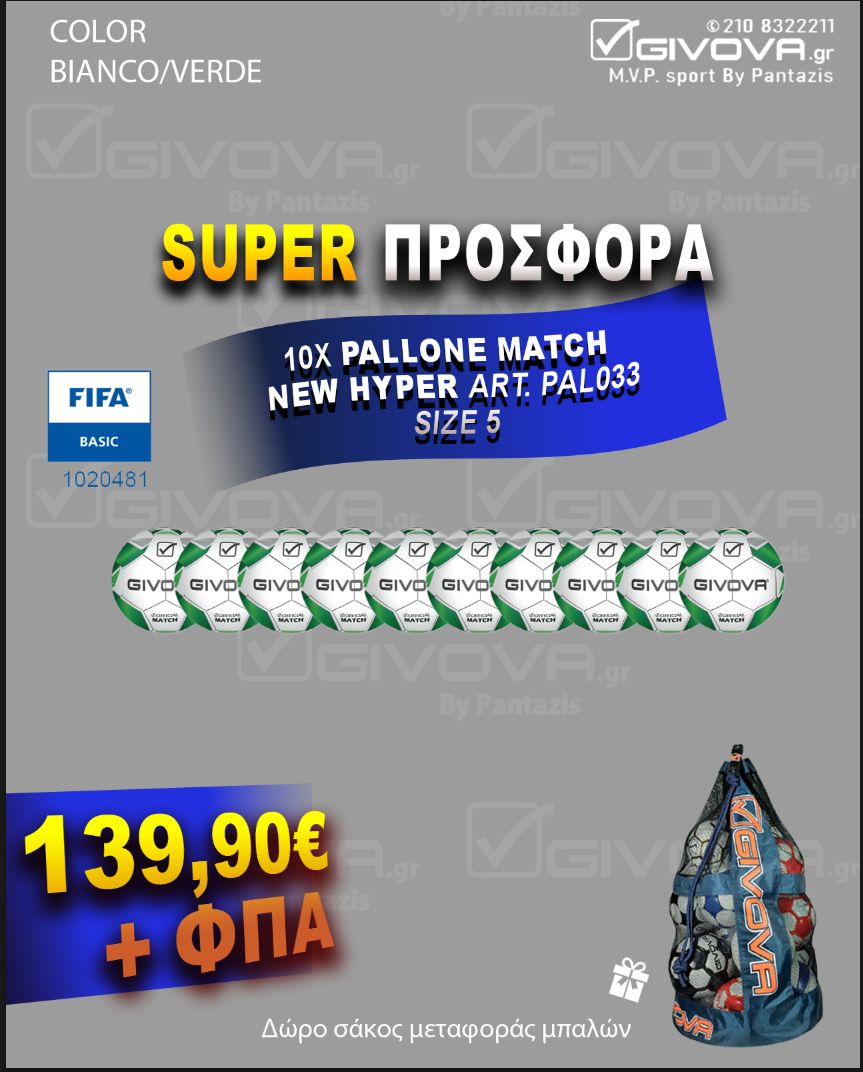 Givova Box-10 Μπάλες Pallone NEW HYPER MATCHN-PAL033+Δώρο Σάκο Μεταφοράς B015