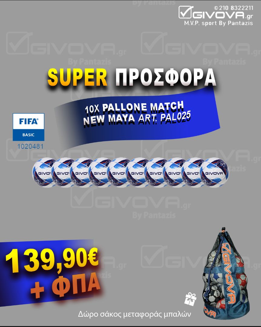 Givova Box 10 Μπάλες Pallone NEW MAYA-PAL025+Δώρο Σάκος Μεταφοράς B015